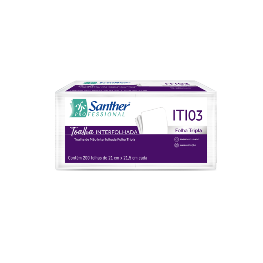 Materiais de limpeza e descartáveis premium para empresas no Rio. Comodato de dispensers Santher incluso.
